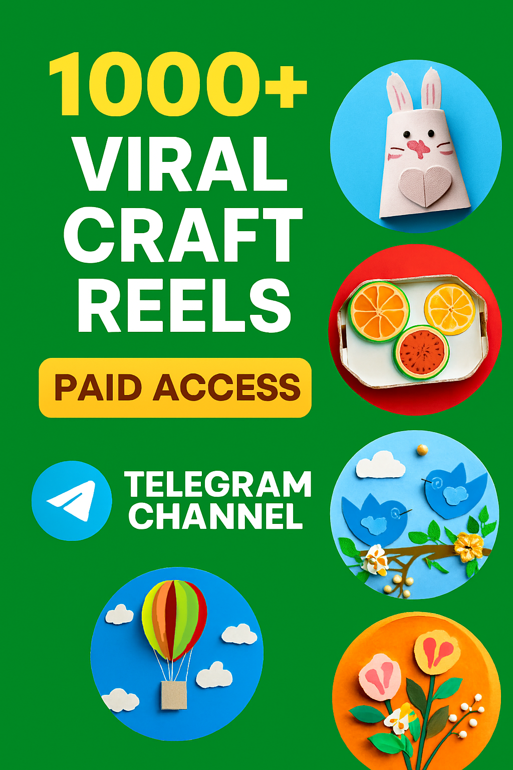 Get instant access to 1000+ viral craft reels through our paid Telegram channel. Perfect for creators looking to grow on Instagram Reels and YouTube Shorts. Download within 3 months for safety. No refunds after joining.